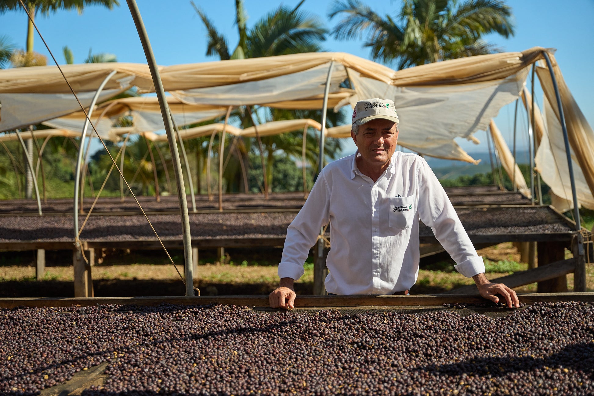Adolfo is the 4th generation of his family to work in coffee, and at Fazenda Passeio he is a pioneer in both quality and sustainability in the region. He manages 130 hectares of coffee on steep terrain with the help of many workers, who in turn get a fair wage as well as social support for their families so their children can attend school, as well as training for them in coffee processing and environmental preservation.
